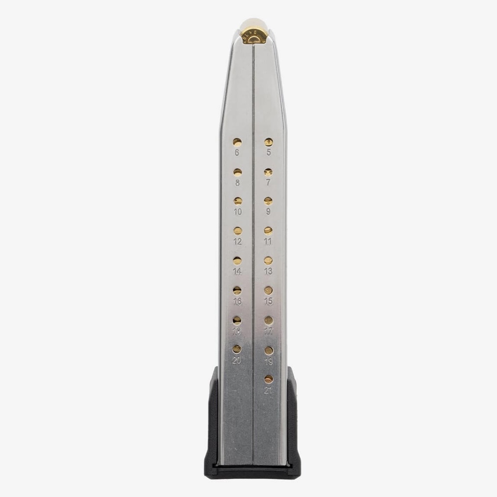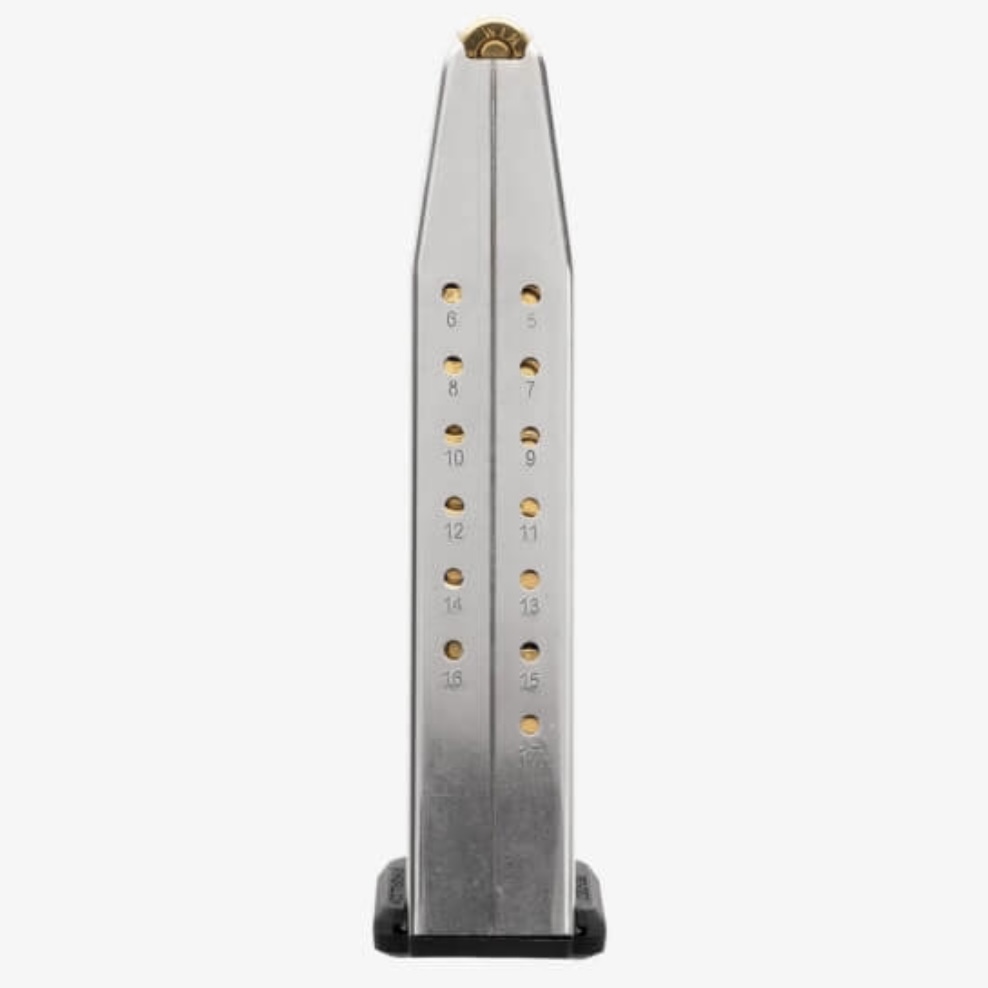 Combine the 17 RD Mag with the MBX Extreme Competition Spring & Follower and GRAYGUN +5 Brass Mag Extension or GRAYGUNS +5 Aluminum Mag Extension to get 24+1